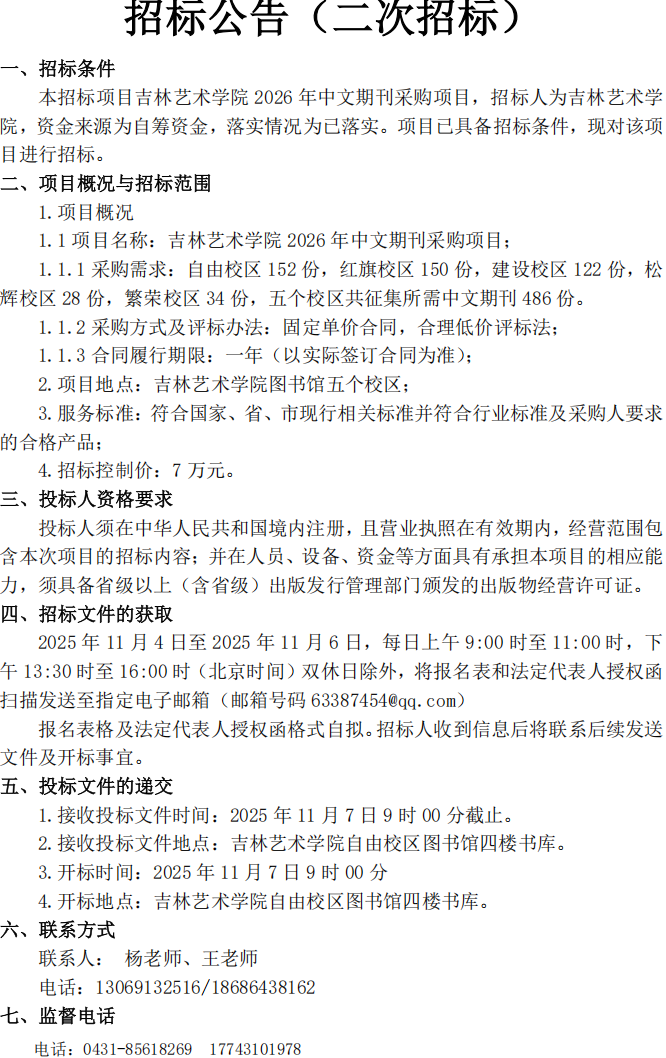 吉林艺术学院招标公告